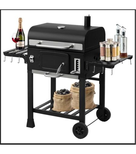 TEENO Chariot de Cuisson au Charbon de Bois, bbq Grill xxl Chariot à Barbecue avec Couvercle, Thermomètre, Gants Anti-Chaleur, Cheminée et Ouvre-Bouteille