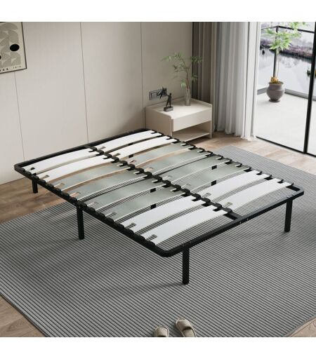 TEENO Sommier 140 x 200cm,2 x 8 Lattes de 125 mm, 7 Pieds, Lit 140 x 200cm, Montage Rapide, Sommiers à Lattes en Bois pour Adulte