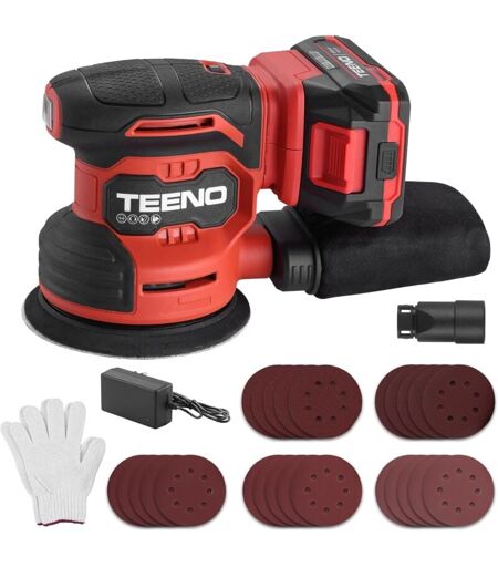 Teeno - Ponceuse Orbitale 20V Ø125MM Ponceuse éLectrique sans fil, 13 000 Spm, Avec 25 Papiers De Verre, Collecteur De PoussièRe, Batterie et Chargeur