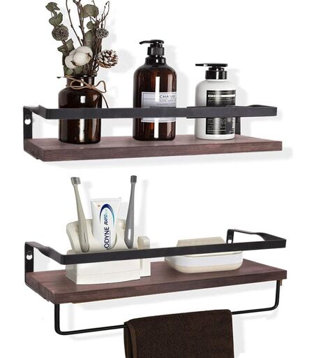 Unho - 2 x Étagère Murale - Étagère Flottante en Bois avec Porte Serviette de 36.5cm - Étagère Rangement Murale pour Cuisine Chambre Salon Salle de