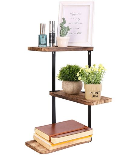 Unho - tagère Murale d'Angle Industrielle - Étagère Rangement en Bois - Étagère Flottante pour Maison Chambre Salon Salle de Bain