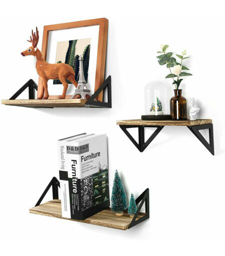 Unho - Lot de 3 Étagères Murales en Bois et Fil de Fer Étagères Flottantes Tablettes Industrielles Décoration Salon Chambre Bureau