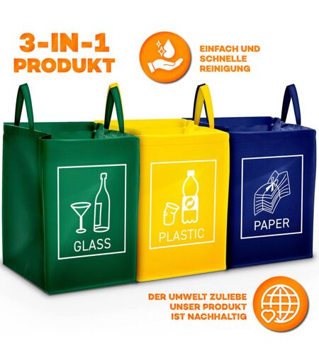 TRESKO Recyclage Poubelle Lot De 3 Sacs de Tri Sélectif avec Anses De Transport