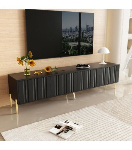 Cette commode TV blanche ne séduit pas seulement par son aspect élégant, mais aussi par sa fonctionnalité. Ses quatre portes présentent un design cannelé vertical unique, qui apporte une touche moderne et fraîche à l’ensemble. Le design sobre et polyvalent s’adapte à différents styles de décoration intérieure, qu’il s’agisse de style moderne minimaliste ou luxueux. Caractéristiques du produit : - Grand espace de rangement : Le design de 190 cm de longueur, doté de quatre portes et huit étagères, offre amplement d’espace pour organiser facilement vos appareils électroniques, livres et bien plus encore. - Élégants pieds de table en or : Les pieds de table en or confèrent à la commode TV une touche de luxe, et leur hauteur de 15 cm permet aux robots aspirateurs de passer facilement en dessous pour nettoyer. - Design cannelé vertical : Le design unique des portes améliore l’esthétique du meuble et s’accorde avec différents styles de logement. - Charnières amorties : Équipée de charnières ...