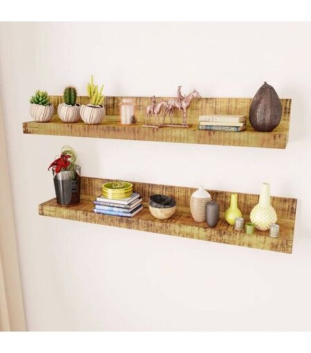 True Deal - inlife Lot de 2 étagères murales en bois solide