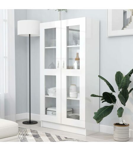 Longziming - inlife Armoire à vitrine Blanc brillant 82,5x30,5x150 cm Aggloméré