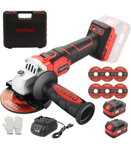 Meuleuse D'angle Brushless Teeno Disque de meulage/découpe diamètre Ø125mm sans fil, Vitesse à Vide 9800 trs/min, 2 Batterie lithium-ion 20V 3.0Ah