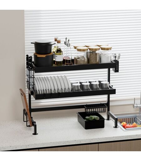 TEENO Gouttoir à Vaisselle Stanew, Égouttoir à Vaisselle 3 Niveaux en INOX,avec Porte-ustensiles,Support pour Planche à découper,pour Comptoir de Cuisine