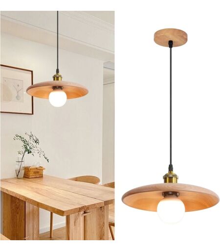 ARTURESTHOME Lustre nordique en bois massif antique Décoration de bar Eclairage LED D28cm X H18cm