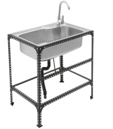 GOJOY Évier en acier inoxydable avec robinets, Évier autonome, Évier de cuisine Pour restaurant, cuisine, maison, hôtel, bar, café, buanderie, jardin, 71 x