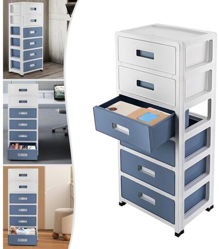 SENDERPICK Armoire à tiroirs en plastique, tour de rangement avec 6 tiroirs, conteneur à roulettes pour chambre à coucher, salon, bureau, etc. Organiseur 35 x
