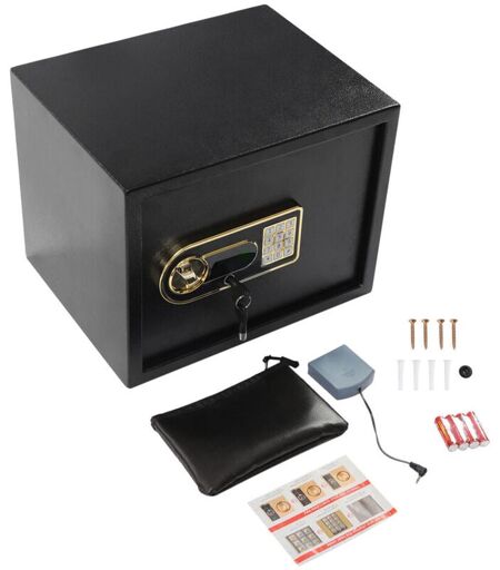 Spécification Matériel : Q235 Carbone Steel Couleur : Noir, or Modes de publication : 2 Capacité : 30L/7.93gallon Poids net : 8kg/17.64lbs Poids brut : 8.6kg/18.96lbs Taille externe : 31*37*30cm/12.2*14.56*11.81inch Dimension de la première couche intérieure : 36*29*13cm/14.17*11.41*5.11inch Dimension de la deuxième couche à l'intérieur : 36*29*15cm/14.17*11.41*5.91inch Taschengröße: 20.5*13.5cm/8.07*5.31inch Taille du paquet : 41.5*35*34.5cm/16.34*13.78*13.58inch Application Ce produit peut être largement utilisé dans les armoires, les études, les tables de nuit, les caisses enregistreuses, les hôtels, les bureaux, les entreprises, etc. pour garder les objets de valeur. Description Voilà un assistant. Composé d'un acier au carbone Q235 exquis, le coffre-fort est durable. La structure épaisse montre une bonne performance de sécurité qui peut mieux protéger vos objets de valeur. En outre, sa grande capacité vous permet de conserver de nombreux objets de valeur. Une multitude de ...