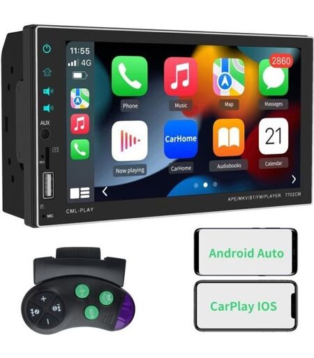 Awesafe Autoradio 2 Din Avec Carplay & Android Auto/Ios Mirror/Auto Link,Autoradio 7'' Écran Tactile Avec Bluetooth 5.0/Gps /Fm/Rds
