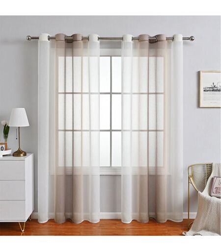 SINBINTA Rideaux Voilage à Rayures, Voilages Intérieurs avec Oeillets, Beaux Voile Rideau Voilage Fenetre Chambre, Lot de 2 Transparent Rideaux Salon - brun