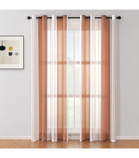 SINBINTA Rideaux Voilage à Rayures, Voilages Intérieurs avec Oeillets, Beaux Voile Rideau Voilage Fenetre Chambre, Lot de 2 Transparent Rideaux Salon Hauteur