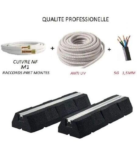 Pack raccordement climatiseur 12 mètres 1/4 3/8 (climatisation jusqu'à 4200w) + 1 PAIRE RUBBER LG400X100X130 QUALITE PROFESSIONELLE norme française PACK COMPRENANT : Liaison frigorifique isolée avec écrous anti uv bi tube 1/4 3/8 longueur : 12 mètres câble isolé 5 g 1.5 mm longueur : 12 mètres tuyau condensat traité anti uv longueur : 12 mètres 1 PAIRE RUBBER LG400X100X130 tout est compris pour la pose du climatiseur au sol ...