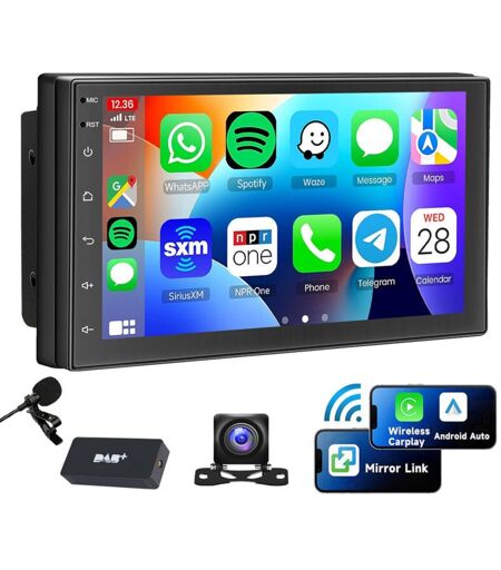 Caractéristiques : Autoradio Android 14 avec écran tactile IPS – Cet autoradio est doté d'une résolution de 1024 x 600, de 2/4 Go de RAM et de 32/64 Go de ROM, d'un écran tactile numérique IPS HD de 7 pouces, d'une prise en charge de la lecture vidéo HD 1080p pour une excellente visibilité et de plusieurs interfaces utilisateur bien conçues, ce qui en fait le choix idéal pour un autoradio. CarPlay sans fil et Android Auto : Plongez dans une expérience d'infodivertissement fluide et intuitive avec Apple CarPlay et Android Auto. Connectez votre iPhone à Apple CarPlay ou votre smartphone Android à Android Auto et accédez en toute sécurité à vos appels, SMS, navigation, musique et bien plus encore. Grâce à une utilisation intuitive via l'écran tactile ou la commande vocale, toutes les fonctions sont à portée de main tout en restant au volant en toute sécurité. Utilisez vos applications préférées et restez connecté à tout moment tout en gardant les yeux sur la route. Transformez votre ...