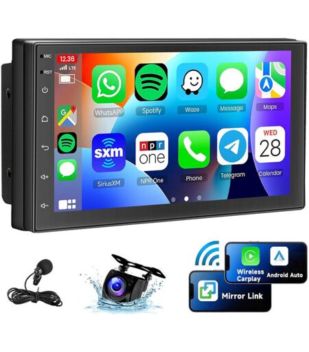 Caractéristiques : Autoradio Android 14 avec écran tactile IPS – Cet autoradio est doté d'une résolution de 1024 x 600, de 2/4 Go de RAM et de 32/64 Go de ROM, d'un écran tactile numérique IPS HD de 7 pouces, d'une prise en charge de la lecture vidéo HD 1080p pour une excellente visibilité et de plusieurs interfaces utilisateur bien conçues, ce qui en fait le choix idéal pour un autoradio. CarPlay sans fil et Android Auto : Plongez dans une expérience d'infodivertissement fluide et intuitive avec Apple CarPlay et Android Auto. Connectez votre iPhone à Apple CarPlay ou votre smartphone Android à Android Auto et accédez en toute sécurité à vos appels, SMS, navigation, musique et bien plus encore. Grâce à une utilisation intuitive via l'écran tactile ou la commande vocale, toutes les fonctions sont à portée de main tout en restant au volant en toute sécurité. Utilisez vos applications préférées et restez connecté à tout moment tout en gardant les yeux sur la route. Transformez votre ...