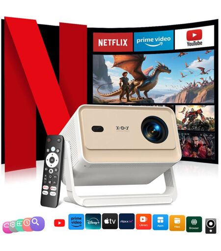 XGODY Vidéoprojecteur 4K【Officiel Netflix& AutoFocus】700 ansi Lumens 1080P Full hd WiFi Bluetooth Projecteur avec YouTube/Prime Video- Version française