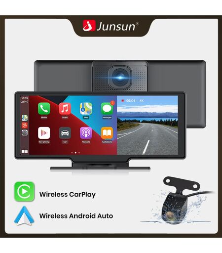 Junsun 10.26 "Dash Cam caméra de recul Wifi Carplay et Android Auto 4K DVR GPS Navigation enregistreur vidéo tableau de bord double Len ...