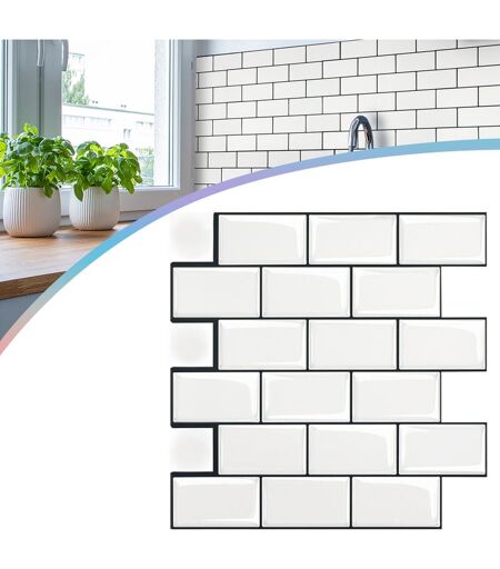Lot de 10 feuilles autocollantes 3D pour carrelage de salle de bain, cuisine - ¨¦tanche - 30 x 30 cm - Type e - Blanc brillant - Uisebrt