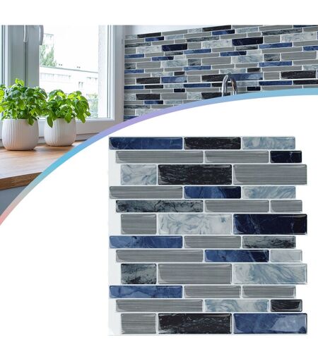 Lot de 10 feuilles autocollantes 3D pour carrelage de salle de bain, cuisine - ¨¦tanche - 30 x 30 cm - Type b - Marbre bleu - Uisebrt