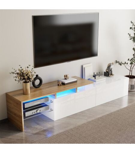 Blossom - Meuble tv led 170x33x33.5cm,16 Couleurs,2 tiroirs et 2 Compartiments,Meuble Télé pour Chambre, Moderne - Blanc