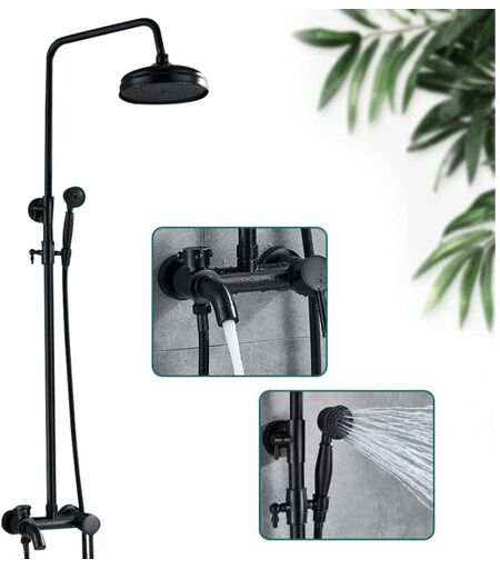 SENDERPICK Ensemble de douche mural Retro Nostalgia Black, raccord de douche, douche de pluie avec douchette à main, système de douche, hauteur de douche