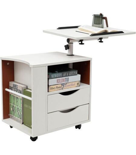 SENDERPICK Table de chevet pivotante fonctionnelle, table de nuit haut de gamme avec tiroirs et roulettes, étagère de lecture multifonctionnelle avec hauteur et