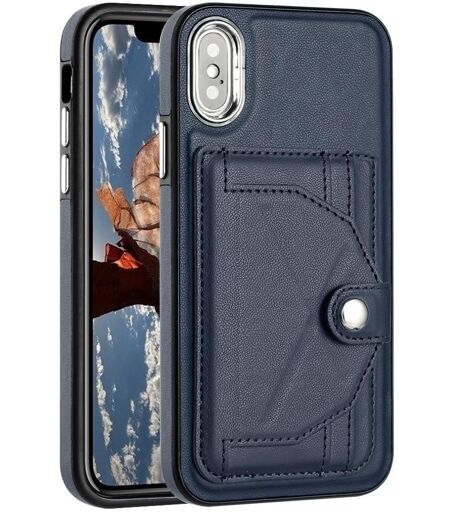 Étui Pour Iphone X/Xs Cuir Pu Premium Titulaire De La Carte Housse De Protection Pour Bécote - Bleu