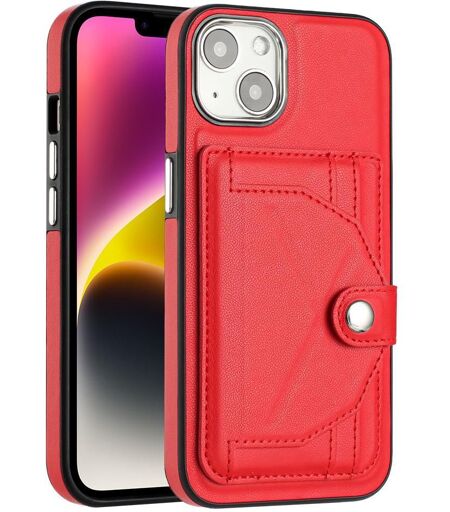 Étui Pour Iphone 15 Plus Cuir Pu Premium Titulaire De La Carte Housse De Protection Pour Bécote - Rouge
