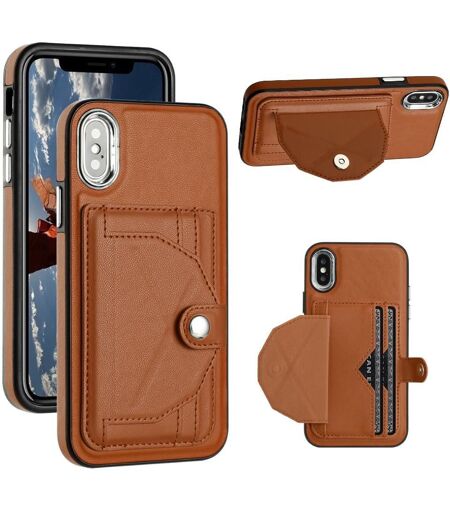 Étui Pour Iphone X/Xs Housse De Protection Pour Bécote Titulaire De La Carte Cuir Pu Premium - Le Brun