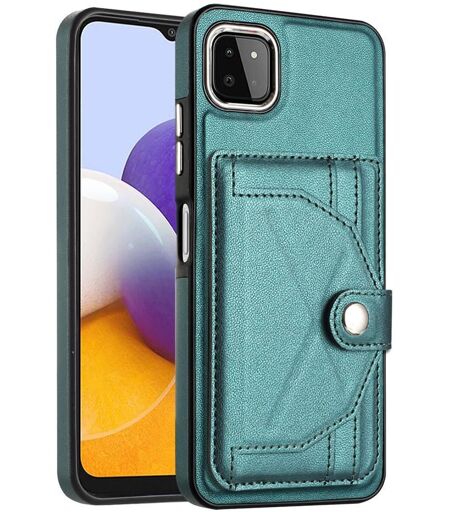 Étui Pour Samsung Galaxy A22 5g Titulaire De La Carte Cuir Pu Premium Housse De Protection Pour Bécote - Vert