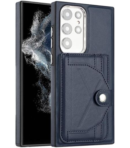 Étui Pour Samsung Galaxy S22 Ultra 5g Titulaire De La Carte Cuir Pu Premium Housse De Protection Pour Bécote - Bleu