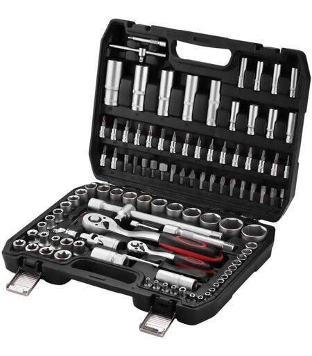 Coffret de douille et embouts Teeno Mallette à Outils ,Cliquet 1/2-inch et 1/4-inch (72 Dents) - 108 pcs - Chrome Vanadium - Mat Satinée - argent