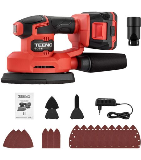 Teeno - 3-en-1 Ponceuse de détail sans fil 20V 20V Ponceuse delta multifonction avec 2A Batterie, 13000 tr/min Ponceuse de détail avec sac de