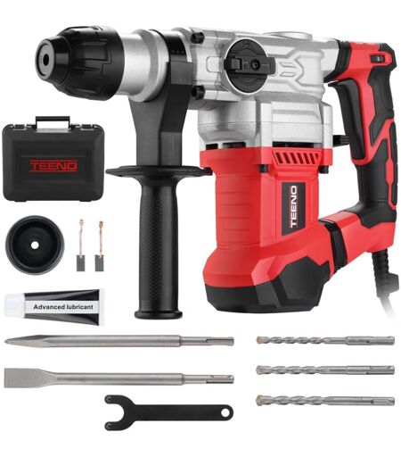 Teeno - Réglable,Souple Marteau Perforateur, 1500W 7J, 6 Vitesses, 4 Fonctions & Plus Rapidement Changer Le Mandrin SDS-Plus, Embrayage de Sécurité &