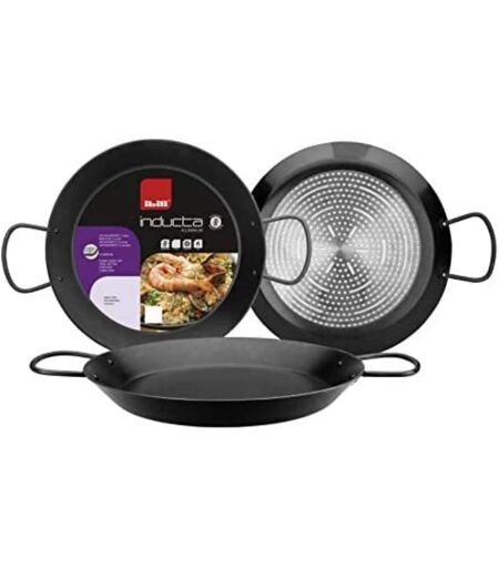 Ibili - Poêle À Paella Inducta, 38 Cm, Aluminium, Antiadhésif, 8 Portions, Compatible Avec L¿Induction, Noir
