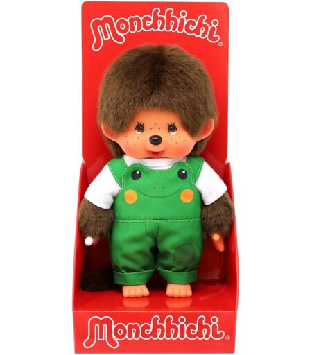 KALANKA-203871 - Monchhichi Original garçon avec Salopette et Motif Grenouille, Peluche d'environ 20 cm en Peluche Marron