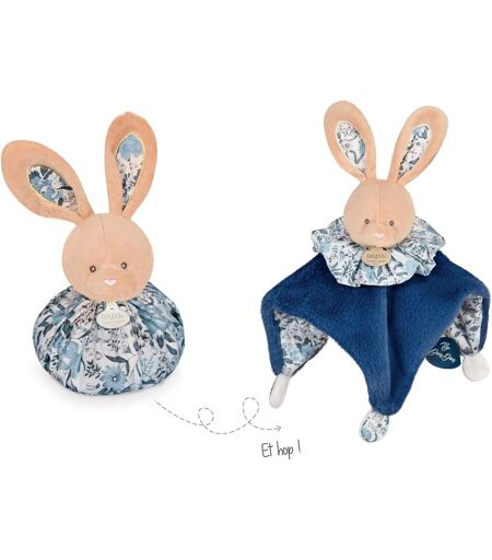 KALANKA-- Peluche Boule Lapin - 3 en 1 : 1 Doudou,1 Peluche , 1 Boule d'Eveil - 25 cm - Bleu/Blanc - Doux pour les Câlins - Idée Cadeau Naissance - Garantie Doudou Perdu - DC3936