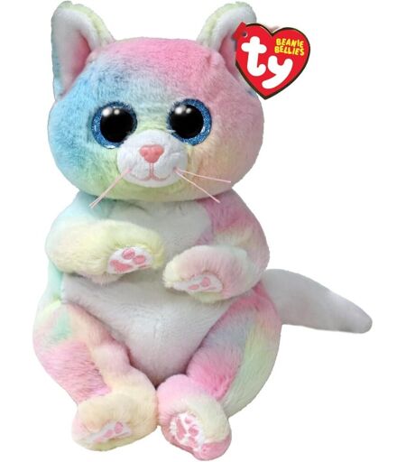 KALANKA-Beanie Bellies - Jenny Le Chaton Multicolore avec Les Yeux Bleus pailletés, Les Animaux en Peluche avec Le Ventre Doux Originaux 20 cm - T41291