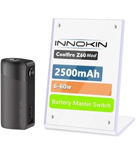 Le mod CoolFire Z60 utilise la technologie de vape de 4e génération. Fabriqué à partir de matériaux haut de gamme, il est léger et très durable. Sa finition mate et lisse est non seulement esthétique, mais offre également une excellente prise en main et un confort optimal CoolFire Z60 Mod Box est alimenté par une batterie de 2 500 mAh, offrant une autonomie de plusieurs jours, quelle que soit votre consommation d'énergie. Le Coolfire Z60 Box Mod offre une puissance variable de 6 à 60 W, vous permettant de vapoter selon vos envies Vous pouvez utiliser le Coolfire Z60 Box Mod avec différents réservoirs compatibles avec le vapotage MTL (bouche-à-poumons), RDTL (directement dans les poumons) et DTL (directement dans les poumons). Grâce à son châssis en aluminium robuste, le Coolfire Z60 est un excellent choix pour le vapotage quotidien Grâce au mode de puissance variable, vous pouvez modifier la puissance entre 6W et 60W par incréments de 1W pour gérer avec précision la quantité de vapeur. Le mode Coil+ prolonge la durée de vie de la bobine en délivrant un boost de puissance à la fin de chaque bouffée, éliminant ainsi les accumulations. Le mode Refresh cycle 40% de la puissance sélectionnée, afin d'éliminer les résidus et de faire pénétrer plus de jus dans le coil et d'améliorer la création d'arômes Le commutateur principal de la batterie situé en bas rend le CoolFire Z60 Vape plus sûr et sécurisé, évitant ainsi les brûlures accidentelles La batterie CoolFire Z60 est idéale pour les clearomiseurs MTL et DTL dotés d'un connecteur 510 et mesurant jusqu'à 25 mm de large Ce produit ne contient pas de nicotine ni de tabac, interdit à la vente aux personnes de moins de 18 ans. En passant commande de ce produit sur Amazon.fr, vous certifiez avoir plus de 18 ans. Does not contain any sticks, liquids, prefilled cartridges or refills.La livraison depuis la France est prévue dans 5 jours ouvrés, n'hésitez pas à passer votre commande ...