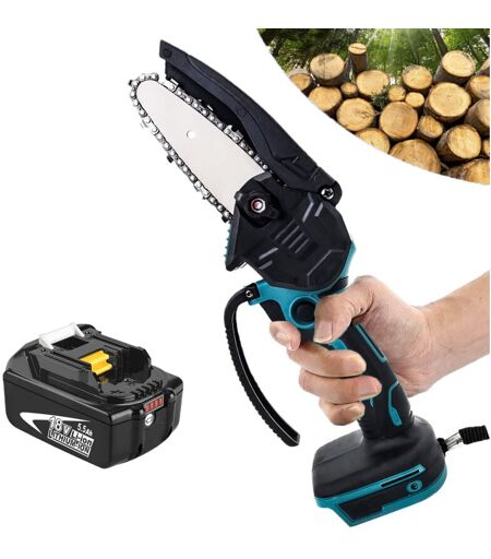 TEETOK Mini tronçonneuse électrique sans fil de 4 pouces, scie à bois, scie à une main, coupe-bois nu + batterie 5500 mAh (sans chargeur), compatible avec