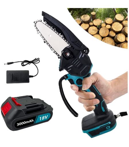 TEETOK Mini tronçonneuse électrique sans fil de 4 pouces, scie à bois, scie à une main, coupe-bois nu + batterie 3000 mAh + chargeur, compatible avec la