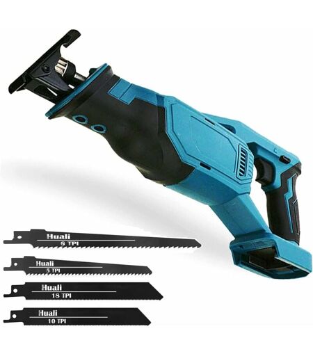 Teetok - Scie alternative sans fil, Compatible avec la batterie Makita, vitesse variable, avec 4 lames, lumière led, 0-3000SPM, pour couper le bois,