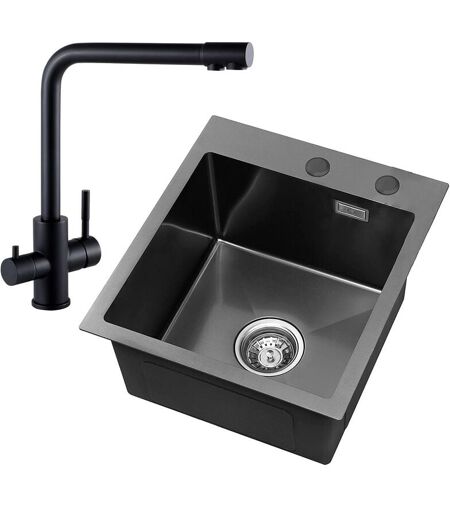 Cecipa - vier Cuisine 1 Bac 40 × 45 cm Évier Inox Montage à Encastrer ou à Fleur de Plan, avec Siphon, Trop-Plein, Anthracite(Pas de Distributeur de