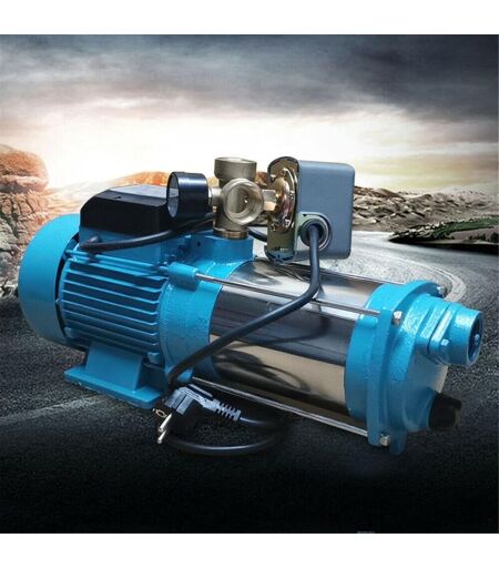 GOJOY Pompe de jardin, pompe centrifugale, pompe à jet avec manomètre, axe en acier inoxydable avec interrupteur à pression, pompe à jet d'eau
