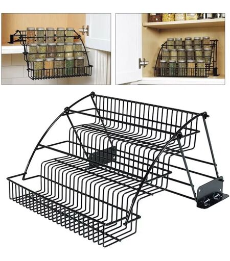 SENDERPICK Rack à épices à 3 étages pour étagère de cuisine, armoire, rack de rangement, métal, noir