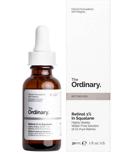 Rétinol 1% dans du Squalane offre une solution sans eau contenant 1 % de rétinol - un ingrédient qui améliore l’apparence des lignes fines et dynamiques qui résultent d’une perte de collagène et d’élastine, tout en uniformisant la texture et le teint de la peau. Cette formule de niveau expert contient du squalane, un agent hydratant naturellement présent dans la peau qui améliore l’hydratation en surface et aide à combattre la sécheresse qui peut être associée à l’utilisation de rétinol. Le conseil de The Ordinary : Commencez par Rétinol .2% dans du Squalane et passez doucement, progressivement, au Rétinol .5% dans du Squalane et au Rétinol 1% dans du Squalane. Cela dit, si vous êtes sujet(e) à une certaine sensibilité, vous préférerez peut-être utiliser les technologies rétinoïdes plus récentes, comme celles que l’on trouve dans notre Émulsion de Granactive Retinoid* 2%.NB : Une fois ouverte, cette formule doit être réfrigérée et utilisée dans un délai de trois mois.Mise en garde : Les rétinoïdes peuvent rendre la peau plus sensible aux rayons UV. La protection solaire est particulièrement importante lors de l’utilisation de rétinoïdes. Ce produit ne doit pas être utilisé avec d’autres rétinoïdes, notamment le rétinol ou l’acide rétinoïque. Ce produit n’est pas un traitement pour l’acnéNB : En cas de grossesse ou d’allaitement, il est recommandé d’éviter les soins contenant des rétinoïdes tels que les formules avec du Granactive Rétinoïde™ ou du Rétinol.IndicationSérum très puissant au rétinol qui cible les signes généraux du vieillissement cutané.ApplicationAppliquez quelques gouttes sur le visage le soir. Ne pas utiliser avec d’autres produits rétinoïdes. Utilisez un écran solaire la journée. Mise en garde : Le rétinol peut provoquer des irritations, des rougeurs et une desquamation, en particulier autour des yeux et de la bouche, au début de l’utilisation, pendant que la peau acquiert une tolérance. Réfrigérer après ouverture.En cas d’irritation, rincez, cessez l’utilisation et consultez un médecin. Utilisez uniquement comme indiqué sur une peau saine. Un test cutané avant utilisation est conseillé. Tenir hors de portée des enfantsIngrédientsSqualane, Caprylic/Capric Triglyceride, Simmondsia Chinensis (Jojoba) Seed Oil, Retinol, Solanum Lycopersicum (Tomato) Fruit Extract, Rosmarinus Officinalis (Rosemary) Leaf Extract, Hydroxymethoxyphenyl Decanone, BHT, ...