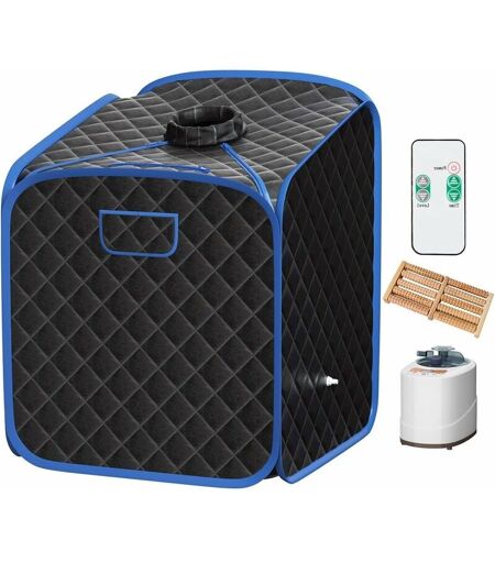 ★SAUNA PERSONNALISÉE★ Notre sauna à vapeur portable est conçu avec 9 niveaux de température (jusqu'à 45°C) et une minuterie de 0 à 99 minutes, ce qui vous permet de profiter d'une expérience de sauna confortable à la maison. Une télécommande est incluse pour vous permettre d'effectuer les réglages. ★FONCTION EFFICACE★ Le cabine de sauna de 1000W vous offre un confort rapide, tandis que la capacité de 2 L permet d'obtenir une grande quantité de vapeur. En outre, le cadre métallique robuste et le tissu isolant de haute qualité rendent l'utilisation confortable et sûre. ★CABINE PLIABLE ET PORTABLE★ Notre tente de sauna peut être installée rapidement sans assemblage compliqué. De plus, elle peut être pliée dans un format compact pour faciliter le transport et le stockage. Ce sauna peu encombrant est idéal pour une utilisation à la maison. ★LARGE GAMME D'ACCESSOIRES★ La chaise pliante incluse vous permet de s'asseoir confortablement dans le sauna, tandis que le rouleau de massage en bois ...